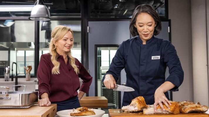 Stuffed Spatchcock Turkey, Shaved Celery Salad; the best slicing knives