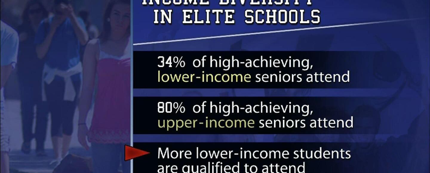Why are some of America's top academic achievers are missing out on a shot to attend the best universities? As part of the PBS NewsHour's continuing coverage on inequality in U.S., Jeffrey Brown talks with Caroline Hoxby of Stanford University, an author of a new study on the issue, and Michele Minter of Princeton University.
