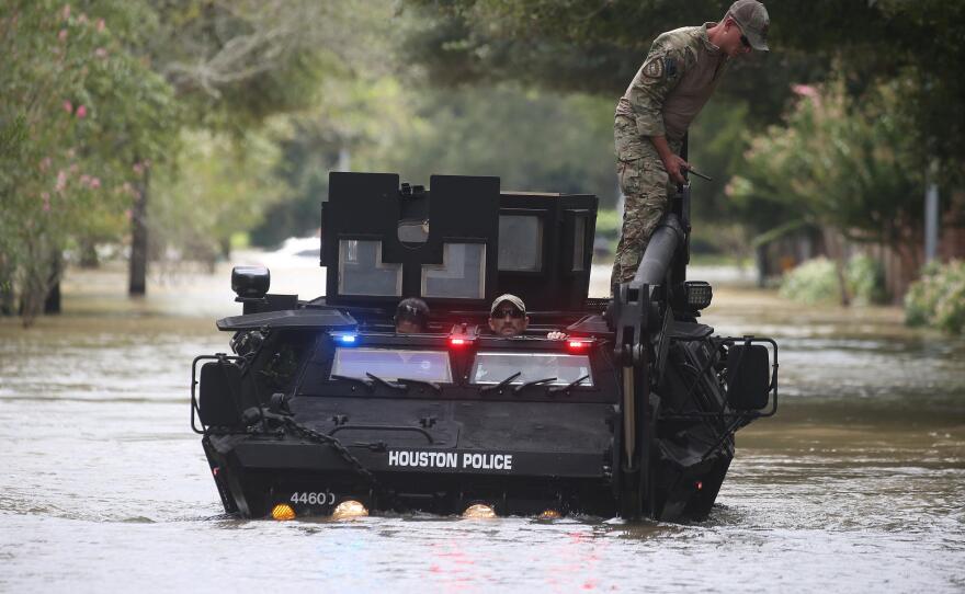 Thursday on the NewsHour, as flood waters recede in Houston, rescue crews go door-to-door and a chemical plant explosion fuels fears of challenges ahead. Also: Texans begin the long road to recovery, how robots are reshaping the U.S. economy, a young girl's quest for a mother figure in county prison and making scientific tools more accessible.